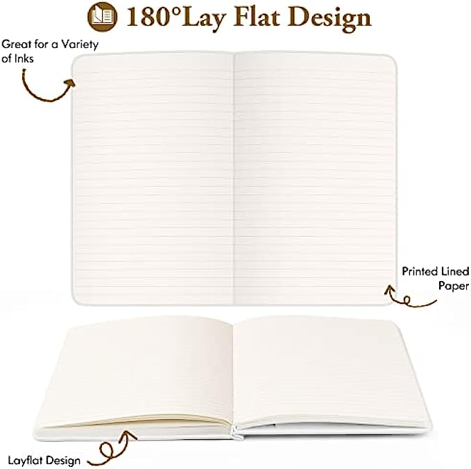 GREAT CLASSIC HARDCOVER RULED NOTEBOOK: Professional durable faux leather notebook journals. The leather feels soft and smooth, will protect your journal to last for years, the pages are thick and cut evenly, minimal ghosting / bleeding. Easy to lay out flat for comfortable writing and reading.