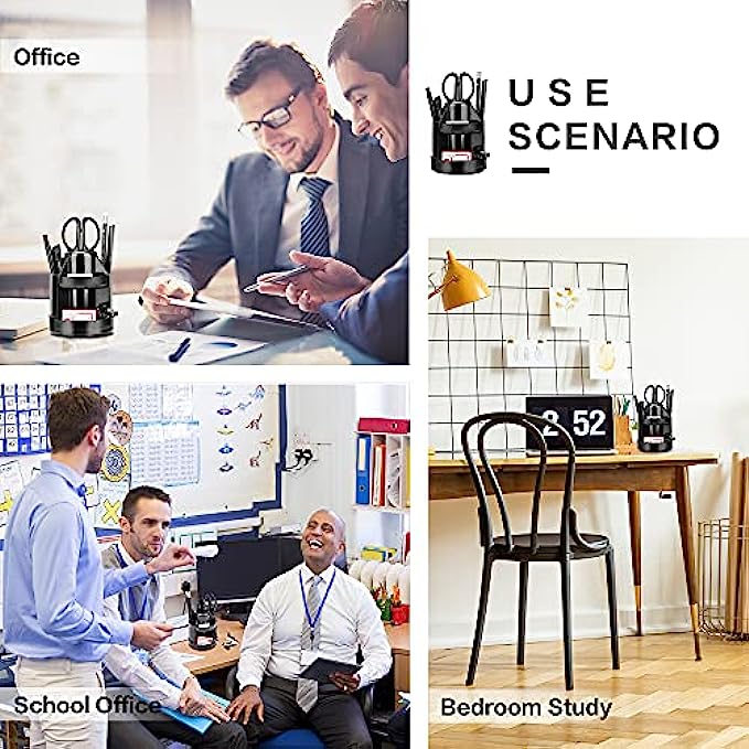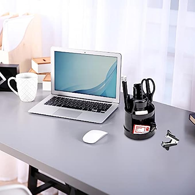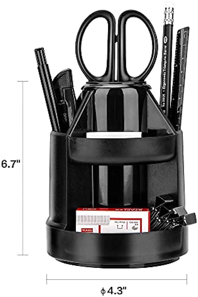 360 Dedree Recolving Desk Organizer: This storage organizer allows you to keep all of your things within reach, simply spin this pencil holder to easy store or take out your office supplies.