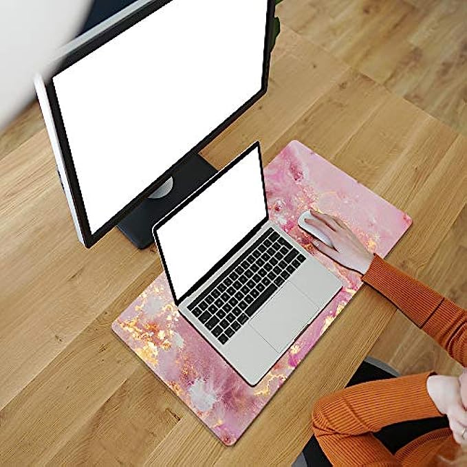 QIYI Large Mouse Pad, Cute Pink Desk Mat for Desktop, Women Girls PU Leather Waterproof Gaming Mousepad, Rose Gold Marble Computer PC Laptop Protector Writing Pads for School Office Home 31.5" x